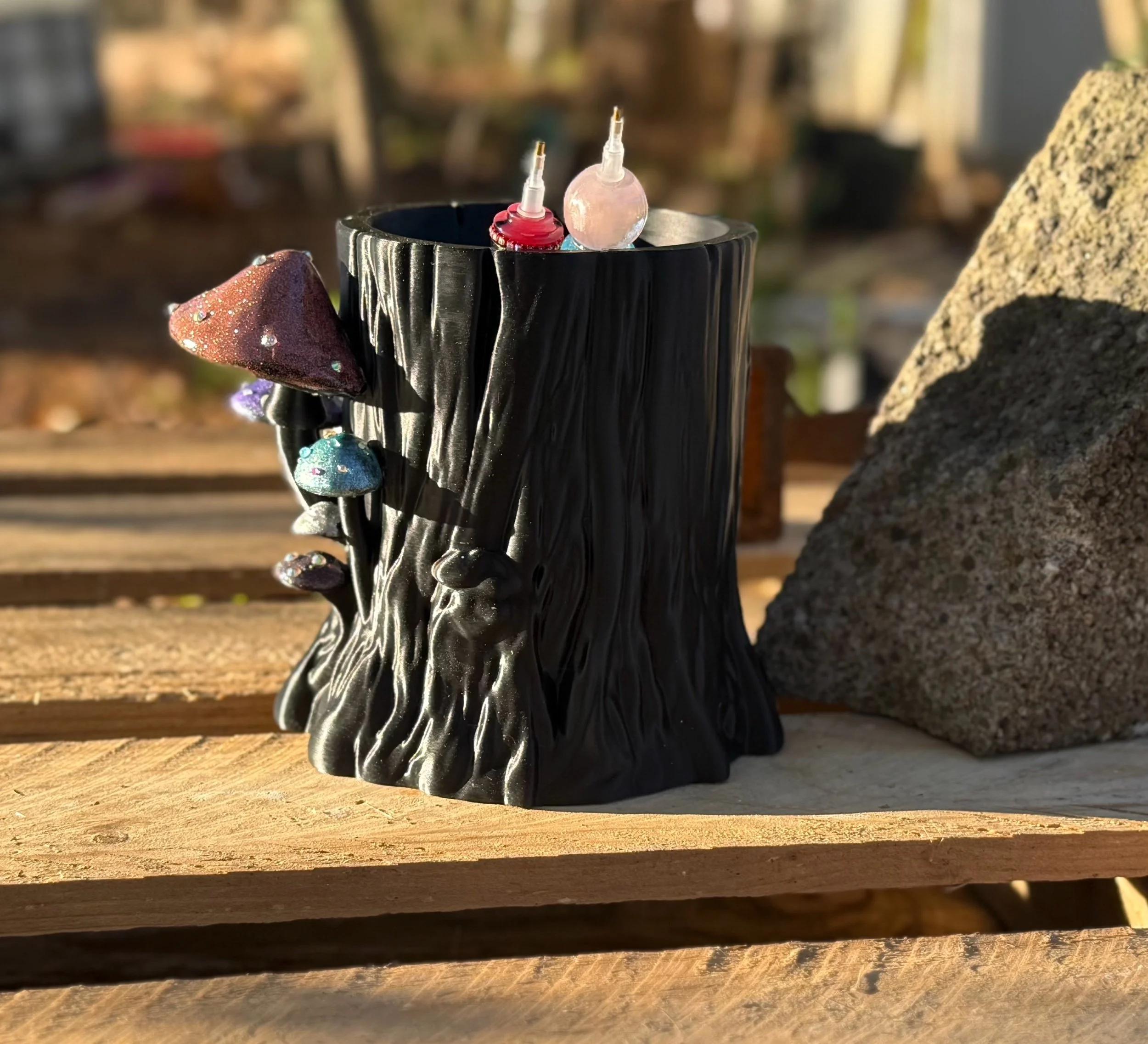 3D printed ornaments, shaped like Deadpool with Christmas accessories.